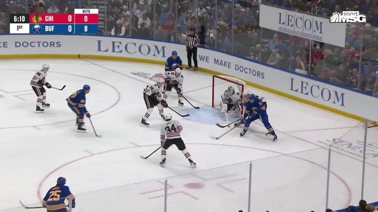 Die Chicago Blackhawks verlieren mit 3:9 gegen die Buffalo Sabres. Josh Doan erziehlt dabei ein Doppelpack für die Sabres.