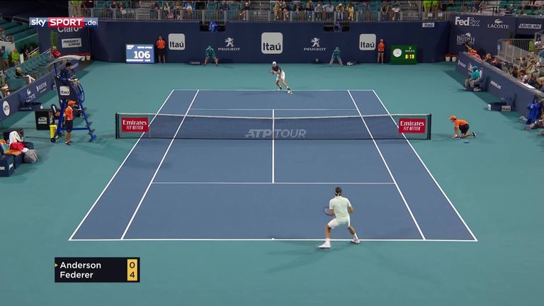 Roger Federer bezwingt Kevin Anderson und steht beim ATP-Turnier in Miami im Halbfinale. Und diesen Ballwechsel werden die Fans so schnell sicher nicht vergessen (Video-Länge: 55 Sekunden).